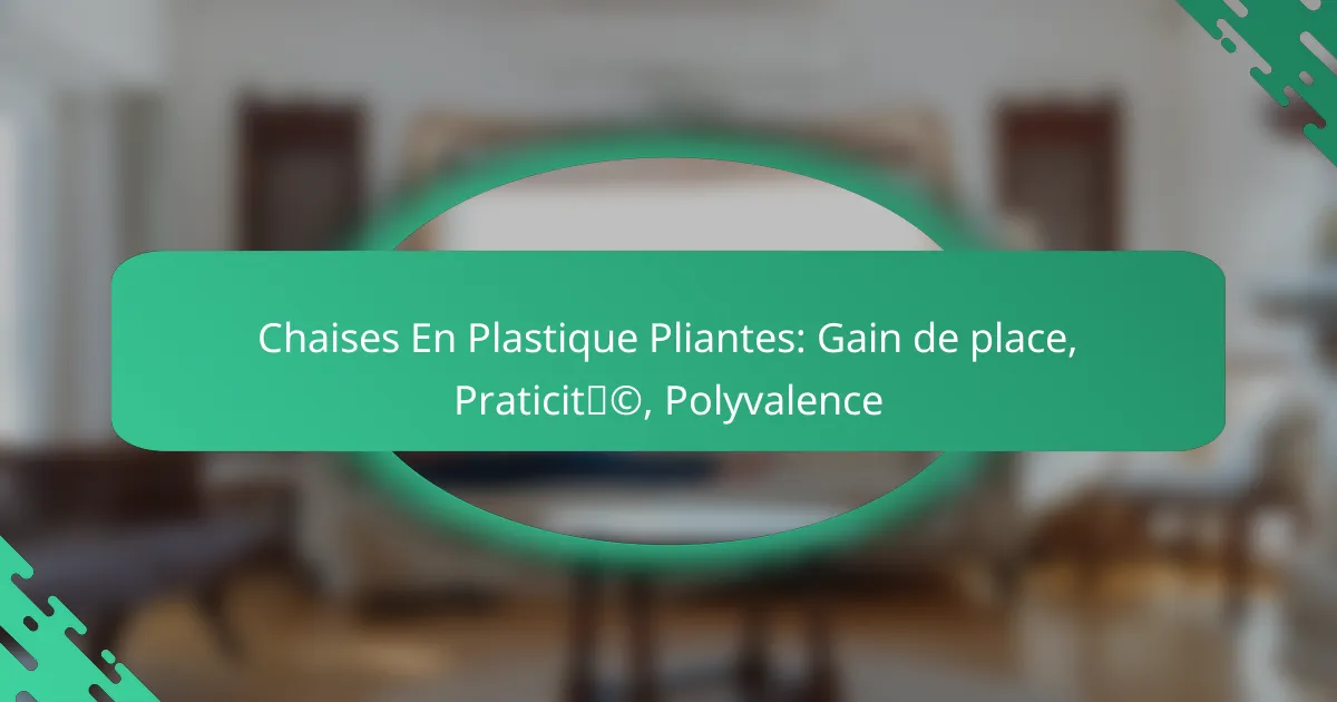 Pour choisir la meilleure chaise en plastique pliante, il est essentiel de considérer l’utilisation prévue, le confort, la durabilité et le design. Évaluez vos besoins spécifiques, comme le stockage et le transport, pour faire un choix éclairé.